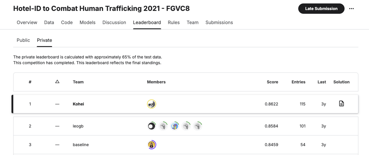 - 投稿のランク付けのために使う、実際のコンペティションの Leaderboard のスナップショット