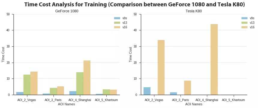 Figure 5: Partial results of training time on GeForce GTX 1080 and Tesla K80.